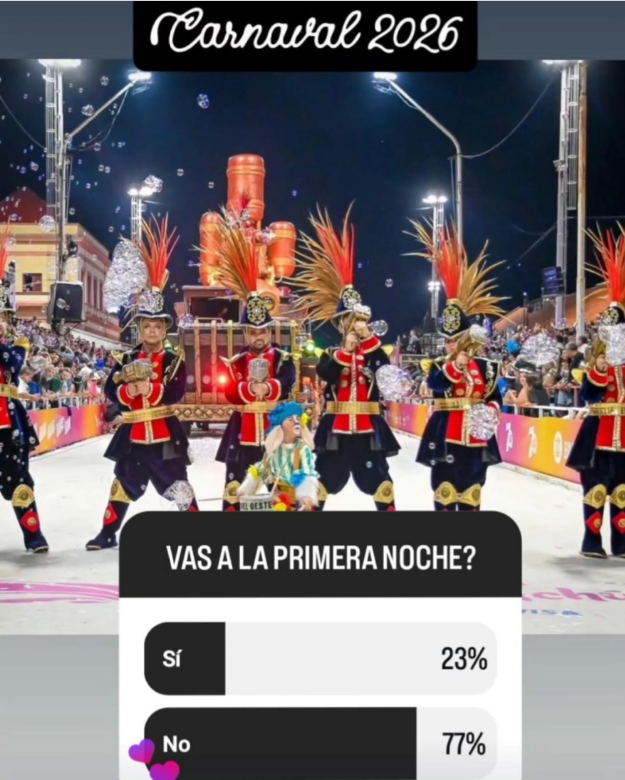 En una encuesta realizada el sábado pasado, desde la cuenta de @maximagualeguaychu vía Instagram, se preguntó al público si iba a asistir a la primera noche del evento. Los resultados arrojaron que el 77% no asistiría, y que el 23% restante si. Comprendiendo estos datos finales del relevamiento, es posible que la Comisión haya tomado esta medida con tal de incentivar al público local a que vaya al Carnaval.