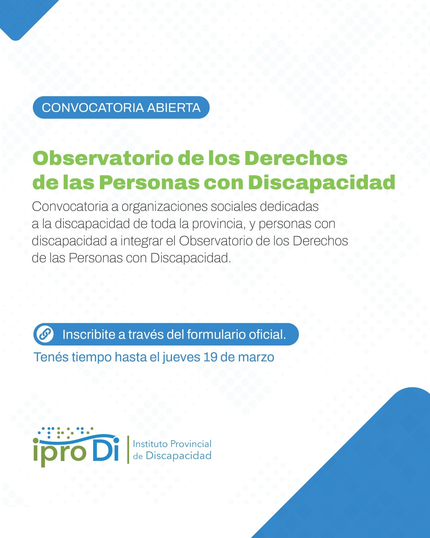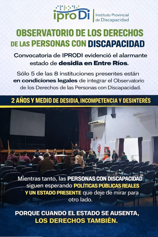El IPRODI (Instituto Provincial de Discapacidad de Entre Ríos) convocó a la conformación del Observatorio de los Derechos de las Personas con Discapacidad, un espacio clave que debería garantizar el cumplimiento de derechos en la provincia.
