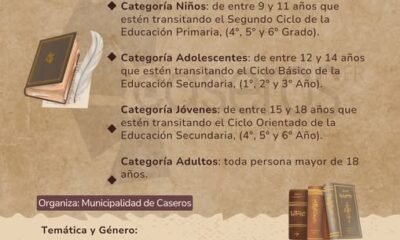 Se encuentra en marcha el II Concurso Literario “Caseros, entre letras y rimas…” abierto a todas las personas radicadas u oriundas de la localidad de Caseros...