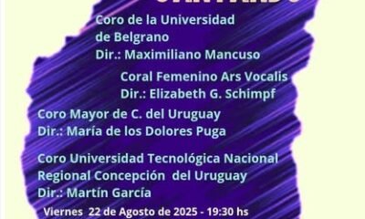 La ciudad de Concepción del Uruguay será sede del encuentro organizado por ADICOER (Asociación de Directoras y Directores de Coro de la República Argentina), será 22...