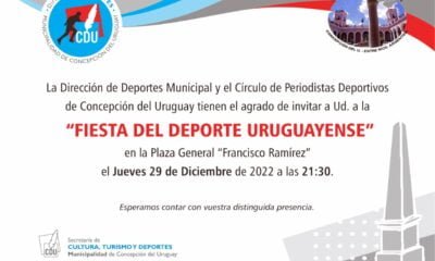 La Dirección de Deportes de la Municipalidad de Concepción del Uruguay y el Circulo de Periodistas Deportivos informan que el próximo día Jueves 29 de Diciembre...
