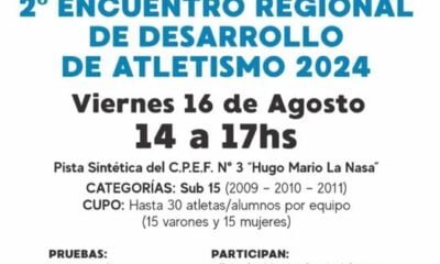 El encuentro será día viernes 16 de agosto de 2024 desde las 14 hs y hasta las 17 hs, en la Pista Sintética del Centro Provincial...