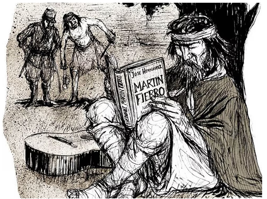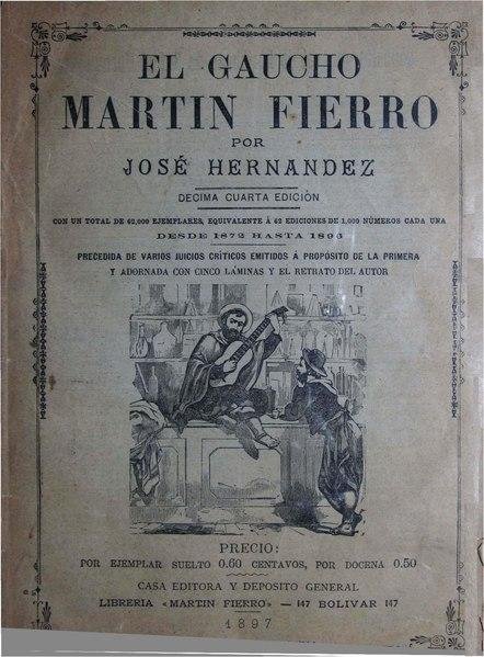 “El Gaucho Martín Fierro” es un poema narrativo con 2316 versos y 13 cantos, publicado en 1872, que representa los hábitos, costumbres, valores, sufrimientos y experiencias de vida de los gauchos que habitaron las tierras del país. Relata la historia del gaucho payador Martín, obligado a incorporarse al Ejército, del cual huye para convertirse en un gaucho matrero, fuera de la ley y lejos de la opresión e injusticia a la que era sometido. Cuenta, además, con una continuación, titulada “La vuelta de Martín Fierro”, escrita en 1879.