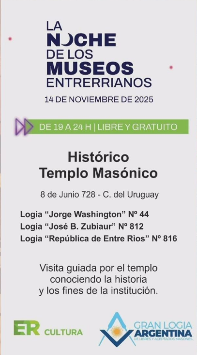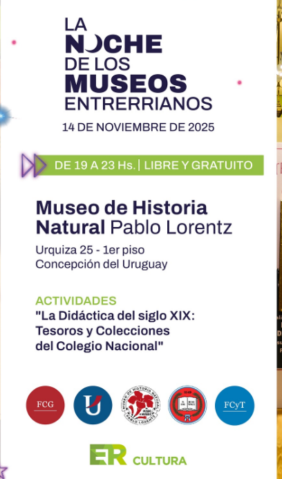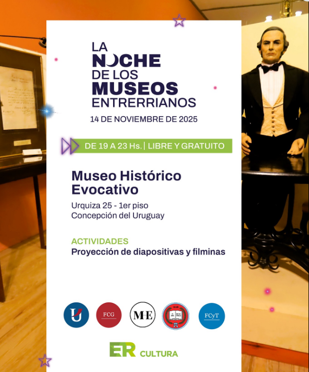 El próximo jueves 14 de noviembre, de 19 a 00 horas, Concepción del Uruguay será parte de una nueva edición de la Noche de los Museos Entrerrianos, una celebración que pone en valor el patrimonio cultural, histórico, artístico y científico de la provincia. Durante la jornada, los espacios ofrecerán espectáculos, muestras, intervenciones teatrales y propuestas para disfrutar en familia.