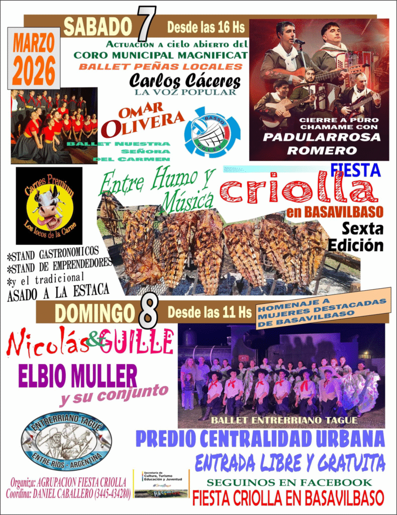 Ya en marzo, el sábado 7 volverá la Fiesta Criolla, que este año presentará importantes innovaciones, reflejo de su crecimiento sostenido. Finalmente, el sábado 14 de marzo, se encuentra en programación la Fiesta Provincial del Riel, uno de los eventos más representativos de la identidad local.
