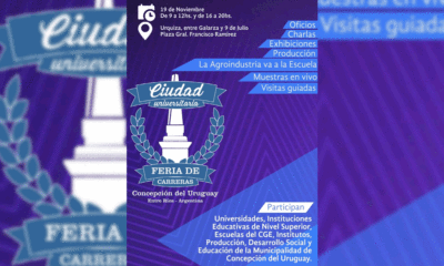 Este viernes 19 de Noviembre en doble turno se realizará la Feria de Carreras en la Plaza Ramírez de Concepción del Uruguay. En ella se brindarán...