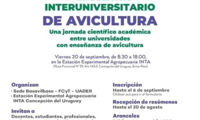 El 3° Encuentro Interuniversitario de Avicultura se desarrollará en el salón de conferencias del INTA, Estación Experimental Agropecuaria de Concepción del Uruguay el viernes 20 de...