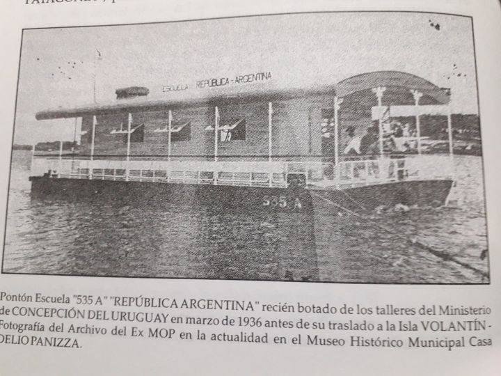 El 29 de marzo de 1936 se inauguraba la Escuela flotante de la isla Juanicó, la escuela Flotante Republica Argentina, la que se fondeó en la Isla “El Volatín”. La escuela fue remolcada desde el astillero del MOP de Concepcion del Uruguay, donde fue construida hasta el lugar de su emplazamiento.