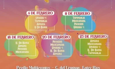 El sábado 28 de febrero de 2026 desde las 22 horas comenzará la última noche del carnaval 2026, que se desarrolla en el predio Multieventos de Concepción del Uruguay.