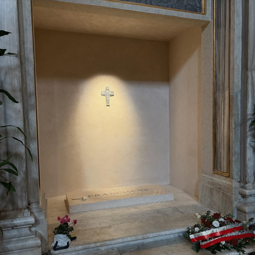 En su visita en Roma y el Vaticano, el padre Pedro no perdió la oportunidad de pasar por el lugar donde descansan los restos del PAPA FRANCISCO.
